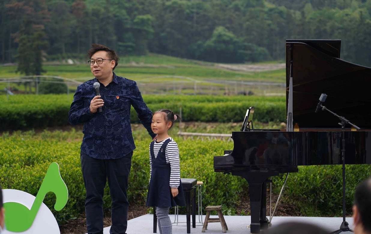 在互动环节,浙音钢琴系教授陈琼生动讲解了钢琴的基本知识,点评了上城埭村小朋友、4岁开始学钢琴的朱乐添演奏的《老麦克唐纳》,并为热爱唱歌的村民杜旭琪伴奏了歌曲《爱很简单》。演出结束后,杜旭琪非常激动:“真的没想到能在自己熟悉的茶园里和专业老师一起演出,这真的十分惊喜。”