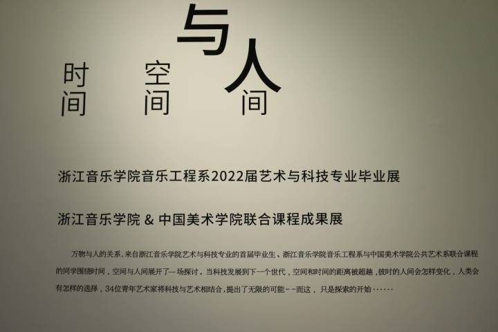 本次展览以“《与人》——时间、空间、人间”为主题,展现了在经历疫情的当下,青年艺术家重新审视人类生活,探索万物与人的关系。在科技飞速发展的未来,“空间”和“时间”的距离可能被超越,他们思索人在时间维度与空间纬度的变化,用声、光、电等多种技术创作的交互装置给人们带来未来生活的体验。展览为期10天,由34位青年艺术家创作的15件声音交互装置作品组成。