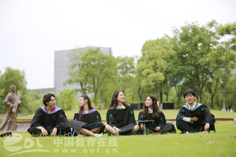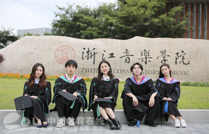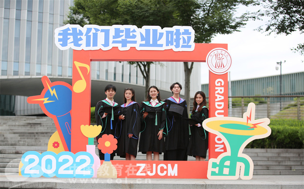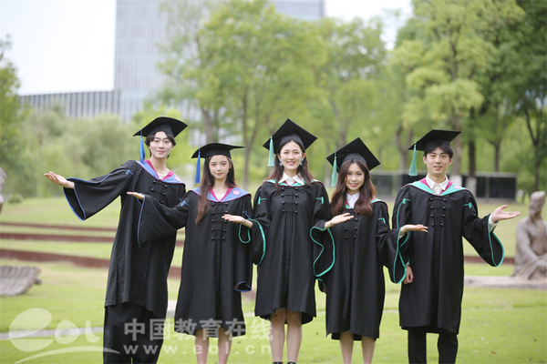 当天,所有毕业生身着浙音设计定制的“中国风”学位服参加毕业典礼、在学校各角落拍照留念。