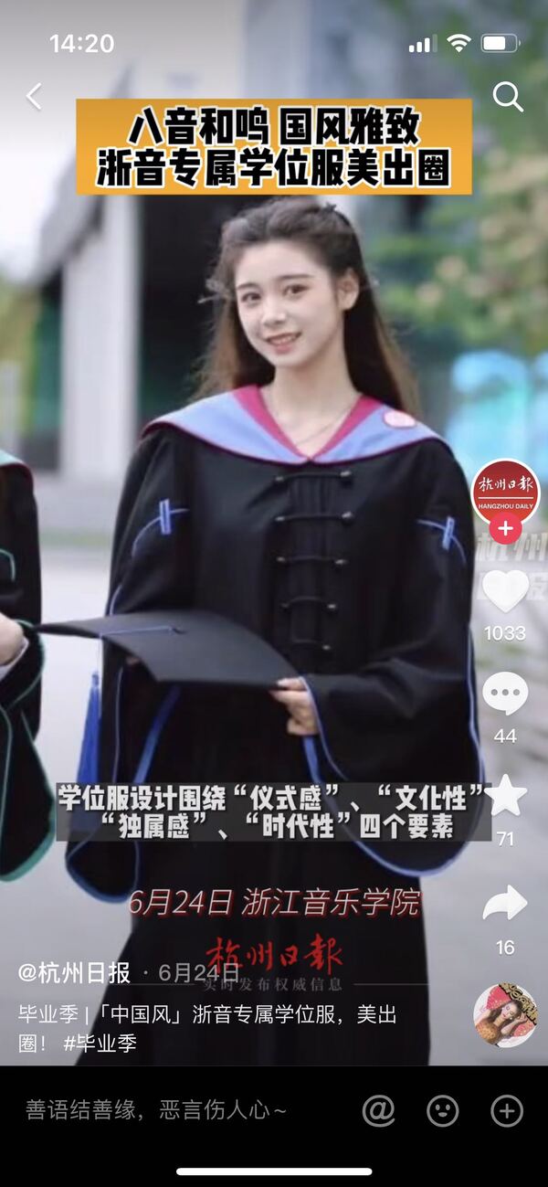 杭州日报抖音:八音和鸣 国风雅致 浙音专属学位服美出圈