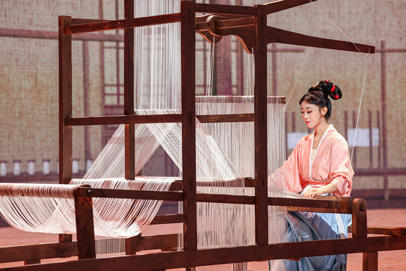 作品《织·梦》改编自浙音原创舞蹈《白纻舞·在水一方》,展示了中国传统的“女织”风俗,颇具江南审美意象。舞台上,青年教师李秋竹及喻佳颖、周莹、林可欣、周李斯、潘莉丽、宋嘉霏、张宁、王施懿、钱怡静、祁熙涵、曹睿颖、管筱歆、李一凡、吴易芝、卓雅等15位同学,将传统纺织技艺融入舞蹈动作,以纺织女工的梦境作为载体,通过舞蹈与现代科技交融的形式,将织女的巧艺与对美满生活的向往呈现在诗情画意的山水意境之中,将南宋古画《蚕织图》缓缓展开,为观众带来一场古今相通,美轮美奂的艺术体验。
