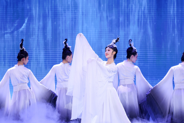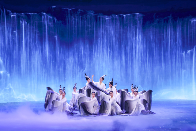 作品《织·梦》改编自浙音原创舞蹈《白纻舞·在水一方》,展示了中国传统的“女织”风俗,颇具江南审美意象。舞台上,青年教师李秋竹领衔,喻佳颖、周莹、林可欣、周李斯、潘莉丽、宋嘉霏、张宁、王施懿、钱怡静、祁熙涵、曹睿颖、管筱歆、李一凡、吴易芝、卓雅等15位同学,将传统纺织技艺融入舞蹈动作,通过舞蹈与现代科技交融的形式,将织女的巧艺与对美满生活的向往呈现在诗情画意的山水意境之中。