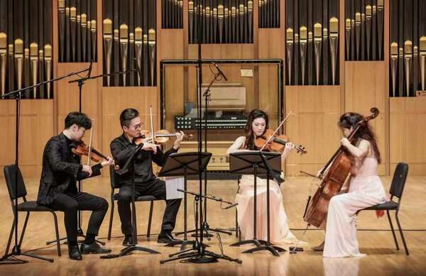 首演音乐会以“梁祝”为主题,以此与俊秀杭州悠长的历史文化、人文气息相呼应,本场音乐会的第一支演奏曲目是何占豪的《梁祝》——献给弦乐四重奏,作品以小提琴的柔美、中提琴的忧郁、大提琴的深沉,共同展现了中国传统的音律、调式,民族器乐演奏中的滑音技巧游走在各个声部之间,将江浙会稽郡学子梁山伯与祝英台的千古爱情故事娓娓道来。
