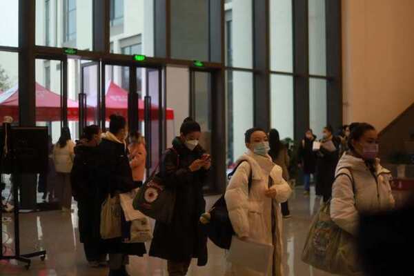 一大早,考生在工作人员的指挥下排队进入舞蹈楼一楼大厅。考生们现场抽签确定考试顺序号,并完成电脑检录流程。接着以组为单位,进入指定地点考试,两个科目考试结束后有序离开。