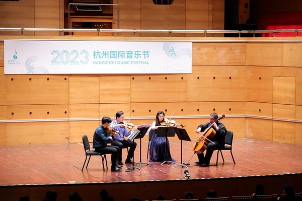 下半场,杭州四重奏还演奏了费利克斯·门德尔松《D大调第三调弦乐四重奏》。作品既有古典主义作品的严谨逻辑性,又带有浪漫主义的幻想性格。演奏家们以精准细致的和声、优美的音色以及各声部力度的平衡,为在场的观众展现了德国音乐柔情似水的一面,无比绝妙的配合使整个演奏华彩洋溢又和谐统一。