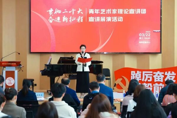 本着“一人一艺”理念,学校运用学生在器乐、声乐、舞蹈、钢琴、戏曲等方面的专业特长,开展常态化艺术展演和文艺宣讲活动,打造多点、高频、流动的文艺景观和宣讲场景,并赴杭州市党群服务中心等单位开展公益美育讲座、艺术演出等30余场,让党的创新理论插上艺术的翅膀、飞入寻常百姓家。