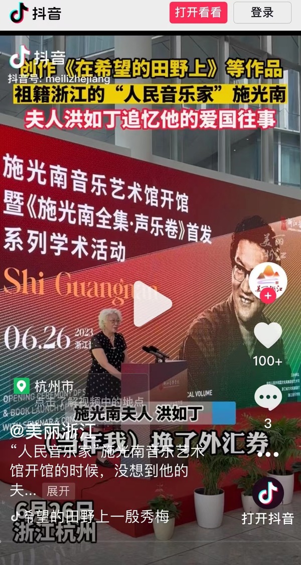 新闻来源:9.97 IiC:/ 复制打开抖音,看看【美丽浙江的作品】“人民音乐家”施光南音乐艺术馆开馆的时候,没想到他... https://v.douyin.com/yF3q6Kp/