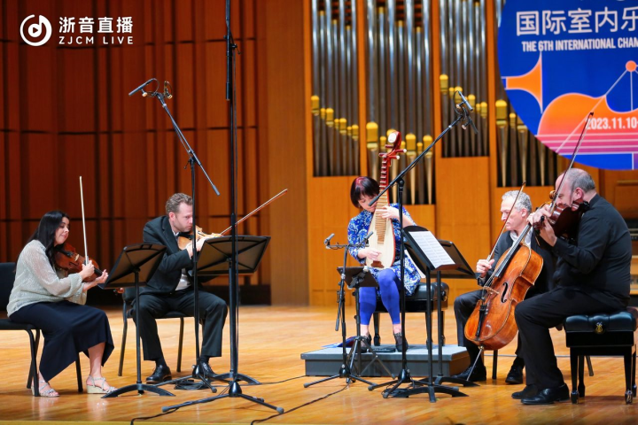 11月27日晚,美国帕西菲克弦乐四重奏与吴蛮琵琶音乐会暨第六届国际室内乐音乐节闭幕音乐会精彩上演,美国帕西菲克弦乐四重奏与国际著名琵琶演奏家吴蛮、杭州四重奏、浙音学生弦乐四重奏共同合作,为观众们带来一场完美音乐盛宴,充分展现了室内乐领域中西合璧的无限可能性。音乐会以《猎户座协奏曲·中国》拉开帷幕,这是一场与无数惊喜相逢的音乐盛会,也是一次融合多元文化、理论与实践全面结合的室内乐教学。