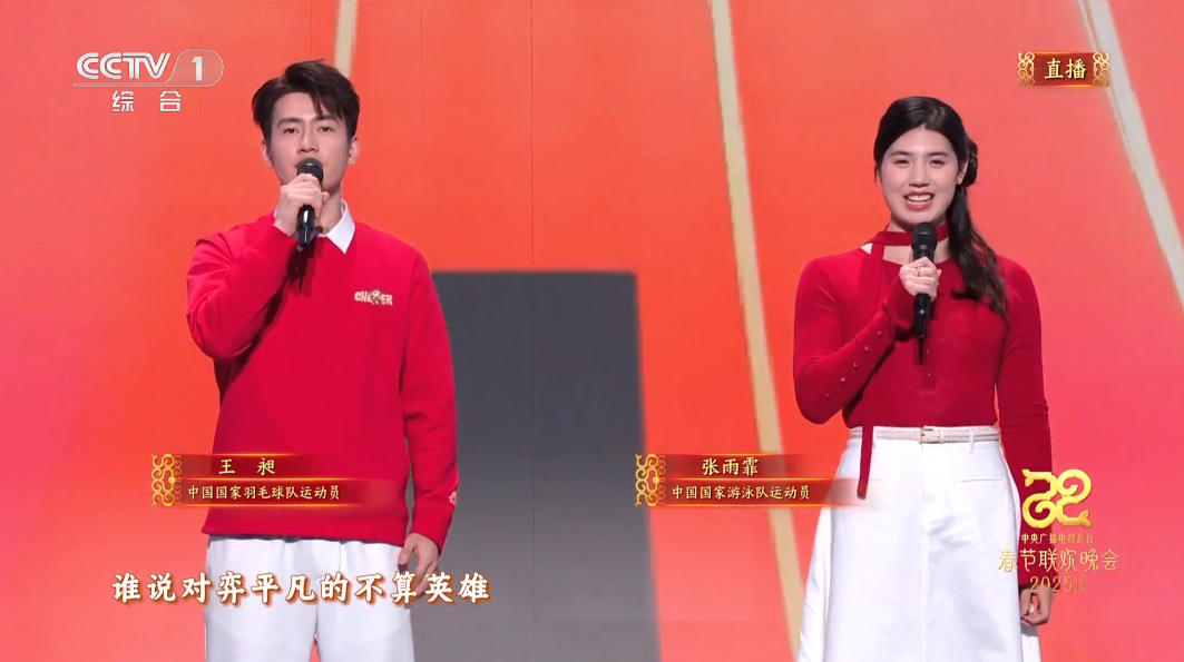 浙籍羽毛球国手王昶,与张雨霏等其他运动员一起,和陈奕迅演唱《孤勇者》,他本人表示上春晚比上比赛场还要紧张。