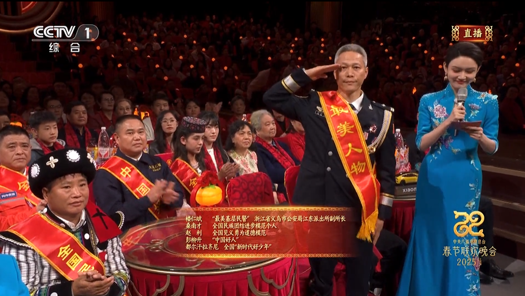 蛇年春晚不断深化“人民的春晚”创作理念,将聚光灯更多投向奉献拼搏的普通人,邀请平凡而伟大的奋斗者走到台前,成为春晚舞台的主角。这其中一位,就是获评2024“最美基层民警”的浙江省义乌市公安局江东派出所副所长楼仁斌。春晚舞台上,他在接受主持人采访时说,自己的心愿是守护好一方平安。