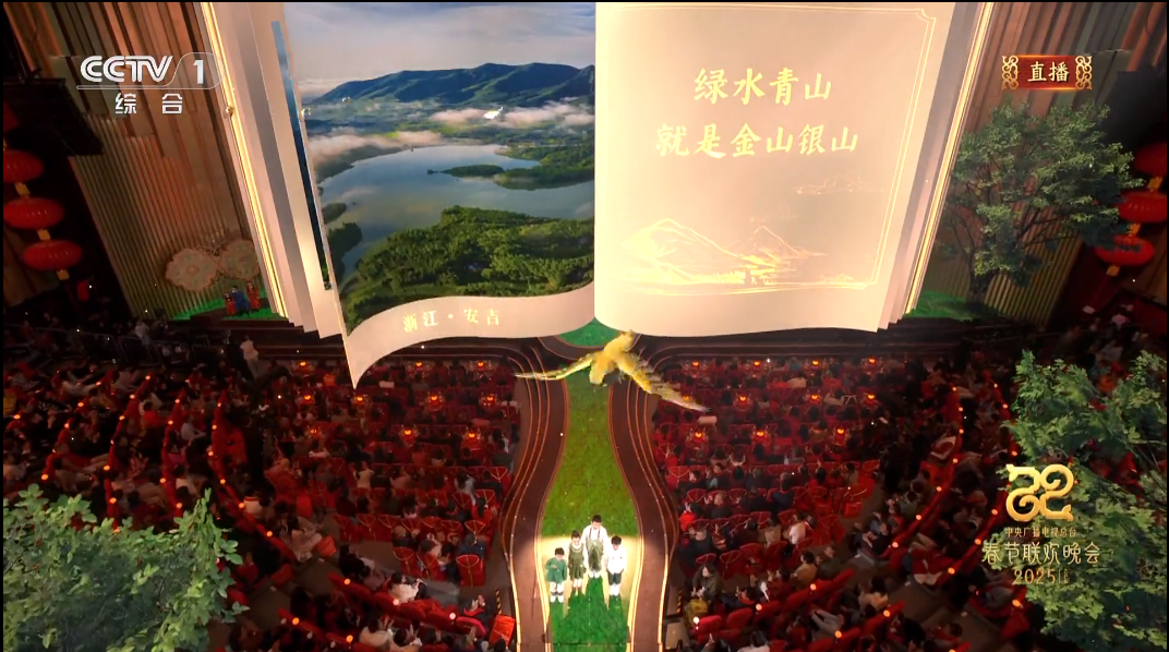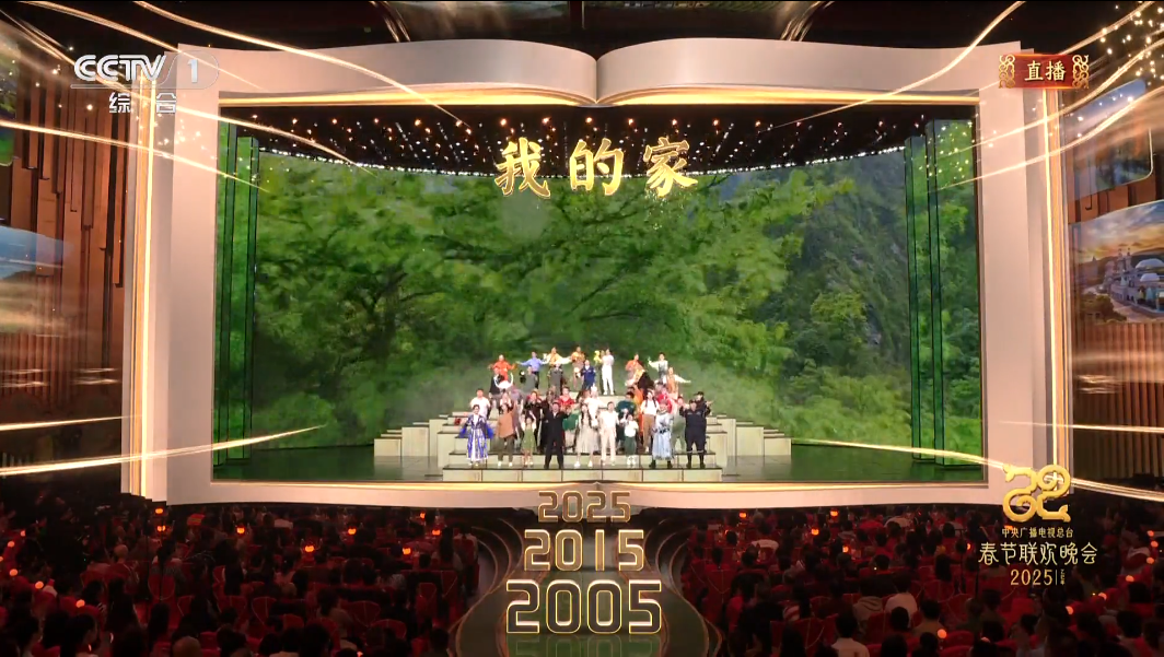 合唱歌曲《我的家》中,四十多位生态文明建设者代表共唱“我的家,到处都是绿的”,展现20年来对“绿水青山就是金山银山”理念的生动实践,铺展开一幅生态美、产业兴、百姓富的美丽中国新画卷。
