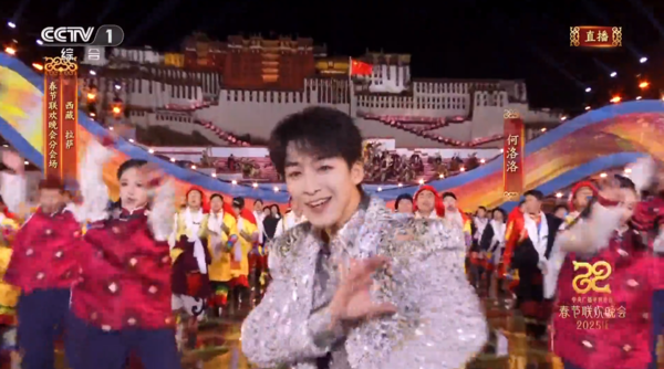 西藏拉萨分会场中,杭州小伙何洛洛,与刘宇等在《格桑花开》中带来舞蹈表演。