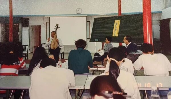 邝先生1935年出生在北京,1958年毕业于中央音乐学院。早年学习西洋铜管,后转学琵琶。学生时代他先后追随了前辈蒋风之、李廷松、曹安和、林石城学习。我1978年进入中央音乐学院附中,期间初中、高中都跟着邝先生学习。由此可以看出,在琵琶教育领域中的师生传承及互相之间的音乐渊源关系是紧密相连的。