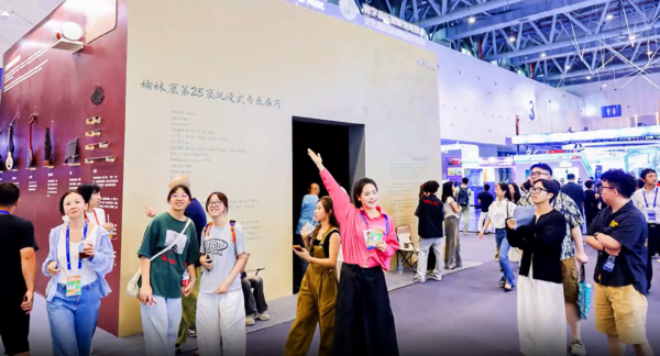 许多观众被利用数字驱动技术研发的敦煌壁画仿制乐器所吸引,在现场进行乐器互动演奏。