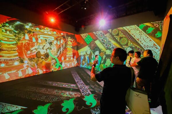 数贸会现场人头攒动,观众争相体验浙音带来的数字音乐特展。其中,“数字敦煌交互音乐特展”通过沉浸声系统、裸眼3D技术、AI数字壁画活化技术与雷达追踪互动技术,再现榆林窟25号壁画场景。
