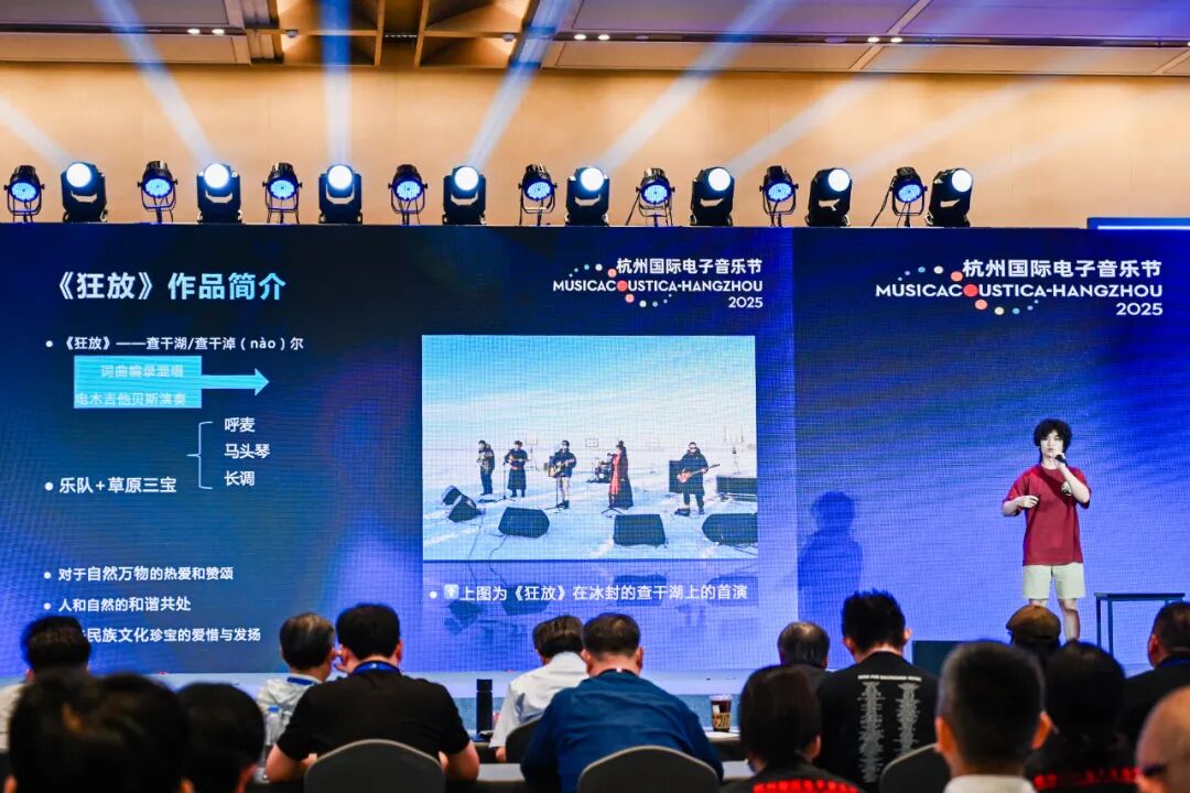 由5个单元新锐音乐家工作坊和5个单元国际大师讲学构成的学术前沿讲座系列在浙音这座艺术殿堂集中呈现,如同一幅长卷,展现了电子音乐未来发展的新理念、新路径、新技术和新实践的美好图景。这些内容涵盖了电子音乐创作理念、舞台艺术呈现、新技术应用与探索研究等多维度、多层面的学术成果,其中,近70%的内容深入探讨了当下人工智能与电子音乐融合创新,包括AI与电子音乐创作、AI与音乐制作的民族定位、AI与神经合成的创新实践、AI与网络音乐创新、智变时代电子音乐人的生存、AI 与音乐高校课程体系建设等,前瞻性地探寻和展望数了智浪潮下新的发展路径。
