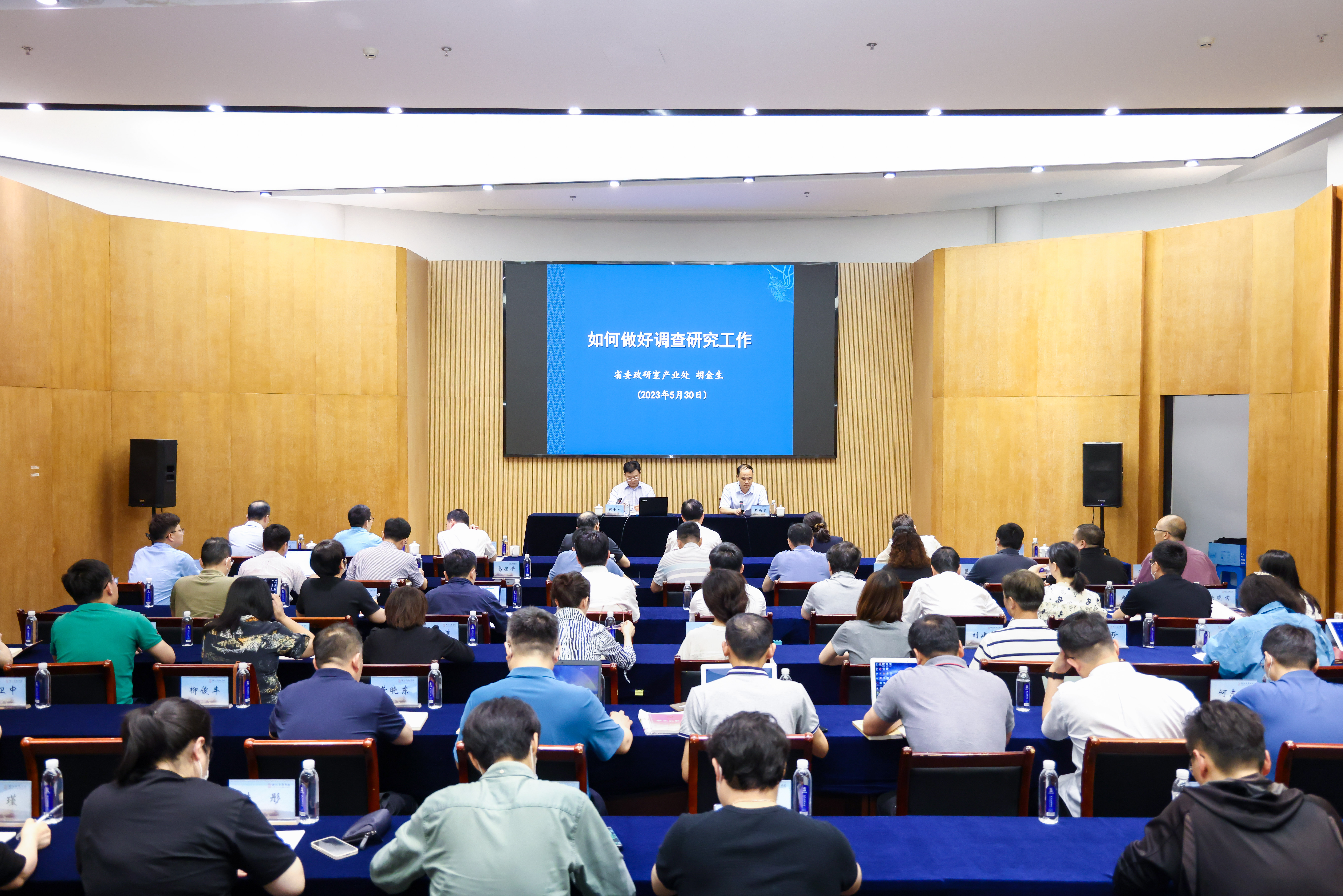 会上,胡金生结合多年来从事调查工作的经验和感悟,从调查研究概述、提高调研水平的途径、写好调研报告的方法三个方面对调查研究进行了深入浅出的讲解。他首先从概念、特征、任务等维度,对调查研究做了精要概述,并特别强调了在工作中开展调查研究的重要性,提出“缺乏调查研究,决策者心中无底;没有调查研究,写作者心中无底”。随后,他根据经验和思考,提出做好调查研究工作,需牢牢把握“勤学、多思、深察、善谋”四条途径。他指出,理论是提高观察力和解决力的强大工具,必须积极思考、积累思考,秉持终身学习的先进理念、养成持续学习的良好习惯、掌握尽可能多的文献资料,并将理论内化吸收,才能掌握理论精髓,自如运用理论。深入调查是做好课题研究的前提,要尽量沉下去多跑多问,努力掌握第一手资料;努力在调研中发现新问题,开展追踪式调查;运用多种方式开展调查,多途径接近客观事物。深刻思考是提升调研水平的关键,要牢牢把握深刻思考是不断回答预设问题、不断产出自己观点、多条思路线索贯通的过程。寻找对策是党政课题研究的重点要求,要将战略战术逻辑贯彻到底、将当下实际作为对策起点、充分考虑领导决策环境、不断反馈对策事实效果。最后,他介绍了写好调研报告的若干方法,指出调研报告是研究成果的集中体现,要把现实的清晰性、思考的深刻性、逻辑的严密性、风格的硬朗性、文章的美观性充分表达出来。他还解答了优秀调研报告的评选标准、调研报告形式创新及其限度等实操性问题。