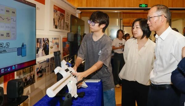 音乐工程系党总支作为长埭村联村共建单位,在推进会现场,把第三届全球数贸会上的展陈搬到了村里。省委教育工委专职副书记、省教育厅党组副书记许翰信,西湖区委常委、组织部长李军以及省教育厅组织处、各兄弟高校组织部等负责人现场体验了搭载无线传感技术的自制数据驱动乐器、通过操纵数据驱动乐器的3D拉绳传感器等,感受数字与音乐的融合之美。许翰信对学院创新举措给予了高度肯定,他指出,这种将艺术与科技融合并带入乡村的做法,为高校艺术院系支部联村共建开辟了新路径,注入了新动力。