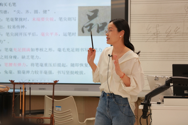 徐施易公开课以习近平总书记的讲话“我将无我,不负人民”为切入点,阐述人民群众在历史发展中的作用,授课内容充实、案例丰富、形式多样,巧妙运用爱国歌曲“飞花令”提升学生专业粘合度,达到教学预期效果。孙慧利用鲜活有趣的多媒体资料和精心设计的案例引导学生举一反三,完成了一场思维训练,展现了“十年树人,十载风,十载雨,十载栋梁”的教师精神。芮樱公开课“韵中有韵,香外生香”,循循善诱地介绍了笔墨纸砚传统文房四宝,对书本知识进行了引申和补充。她通过提问启发学生思考,扩展学生的知识面,让知识入心入脑。听课教师踊跃点评,从教学内容设计、教学模式探索、教改理念革新等方面进行深入交流,提出了许多富有建设性的意见。