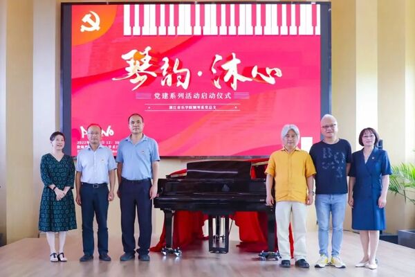 在中国共产党成立101周年、浙江省第十五次党代会召开之际,由钢琴系党总支主办的“琴韵·沐心”党建系列活动启动仪式在教师教学发展中心学术厅举行。学院党委副书记王均寅,副院长杨九华,党委委员、宣传部部长、教师工作部部长李俊,组织部、宣传部、教务处、学生工作部、研究生工作部,以及部分院系党组织负责人、钢琴系党政领导班子及全体师生出席了本次活动。学院领导和钢琴系党政班子为“琴韵·沐心”党建系列活动揭幕。