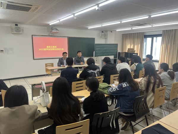 为了更好推进音乐工程系学生的就业工作,让毕业生认清形势、明确目标,近日,音乐工程系召开了2023届毕业生就业动员大会。人事处、音乐工程系相关负责人出席,班主任、系辅导员、教学秘书和全体毕业班本科生、研究生参加。会议由系党总支负责人主持。