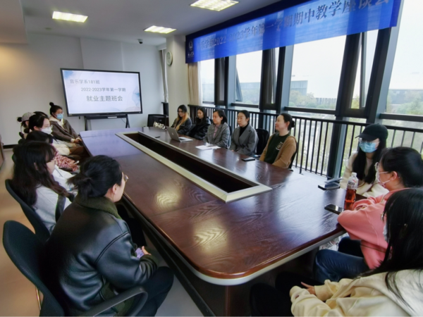 主题班会上,系党总支负责人传达了教育部、人力资源和社会保障部召开的2023届全国普通高校毕业生就业创业工作网络视频会议精神,深入分析了当前的就业形势,并鼓励大家要把握时机,勇于迎接挑战。随后,西方音乐史教研室负责人针对考研相关问题,建议大家制定合理的复习计划,鼓励大家科学备考,注意劳逸结合,并鼓励大家坚定信心、勇往直前。最后,班主任老师对本次班会进行了总结。