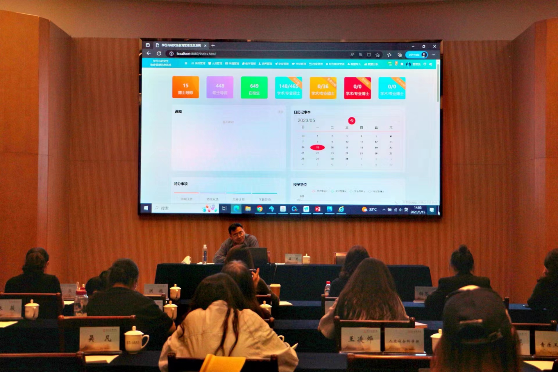 5月15日,研究生处在行政楼103会议室举办研究生教育管理系统专题培训会,来自各院系的导师代表、教学秘书及研究生代表分场次参加了此次会议。