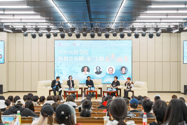 第十八届中国戏剧节在杭州举办,中央戏剧学院原创音乐剧《家》在浙音大剧院演出,为帮助同学们更为深入地了解《家》这部原创音乐剧,戏剧系邀请该剧主创:中央戏剧学院音乐剧系教授、博士研究导师刘红梅教授;作曲:中央戏剧学院音乐剧系主任、硕士研究生导师戴劲松教授;编剧、作词:中央戏剧学院戏剧文学系教授、博士研究生导师陈小玲教授;舞台设计:中央戏剧学院舞台美术系教授、博士研究生导师边文彤教授;主演:郑欣闻笛副教授,金圣权、田依凡老师一行七人到场,戏剧系音乐剧专业与影视表演专业的百余名同学们与部分老师参加此次活动。