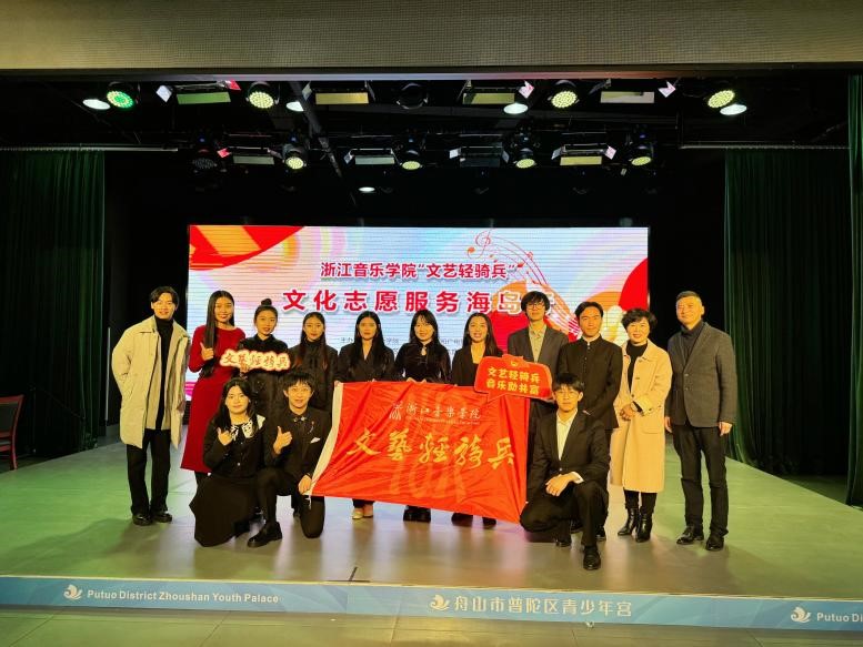 2月21日, 我校音乐教育学院、声乐歌剧系、流行音乐系、管弦系、高研院学生组成“文艺轻骑兵”,在舟山普陀、岱山连续开展数场文化志愿服务活动。