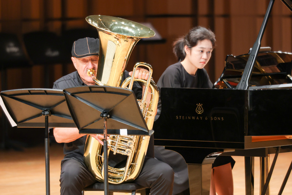 音乐会的重奏部分由教授与其学生献上巴赫的《G弦上的咏叹调》,随后教授指挥了两校大号学生合奏卢科维茨的《文艺复兴组曲》及琼斯的《快板》。我校大号教师柯闵中指挥学生们共同演奏了罗布列斯基改编的《凤阳花鼓/农家乐》、刘铁山/茅沅的《瑶族舞曲》。最后,教授指挥了哈钦森的《土巴 朱巴 杜巴》。