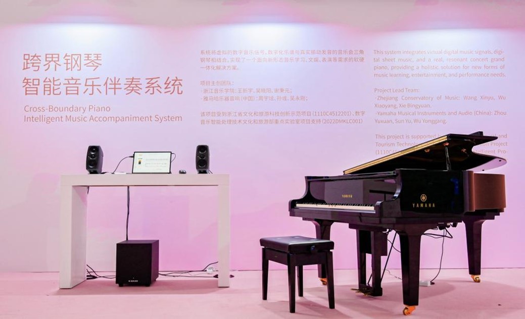 本届青科会以“汇聚天下英才 共创美好未来”为主题,围绕“青年创新塑造新质生产力”的年度议题,设置三大板块近20场研讨交流活动,吸引了71个国家和地区以及63个国际科技组织的近800名科学家、企业家、教育家和青年科技人才代表参会。 其中,跨界钢琴智能音乐演奏与伴奏系统是在浙江省文化和旅游科技创新示范项目(重点孵化项目)、数字音乐智能处理技术文化和旅游部重点实验室项目支持下,由学院与雅马哈乐器音响(中国)公司共同开展的校企合作项目。王新宇、吴晓阳、谢秉元等多名学院师生承担了该系统程序设计迭代、软硬协同、数字化资源建设测试等方面工作,实体乐器与硬件部分由雅马哈公司研发。