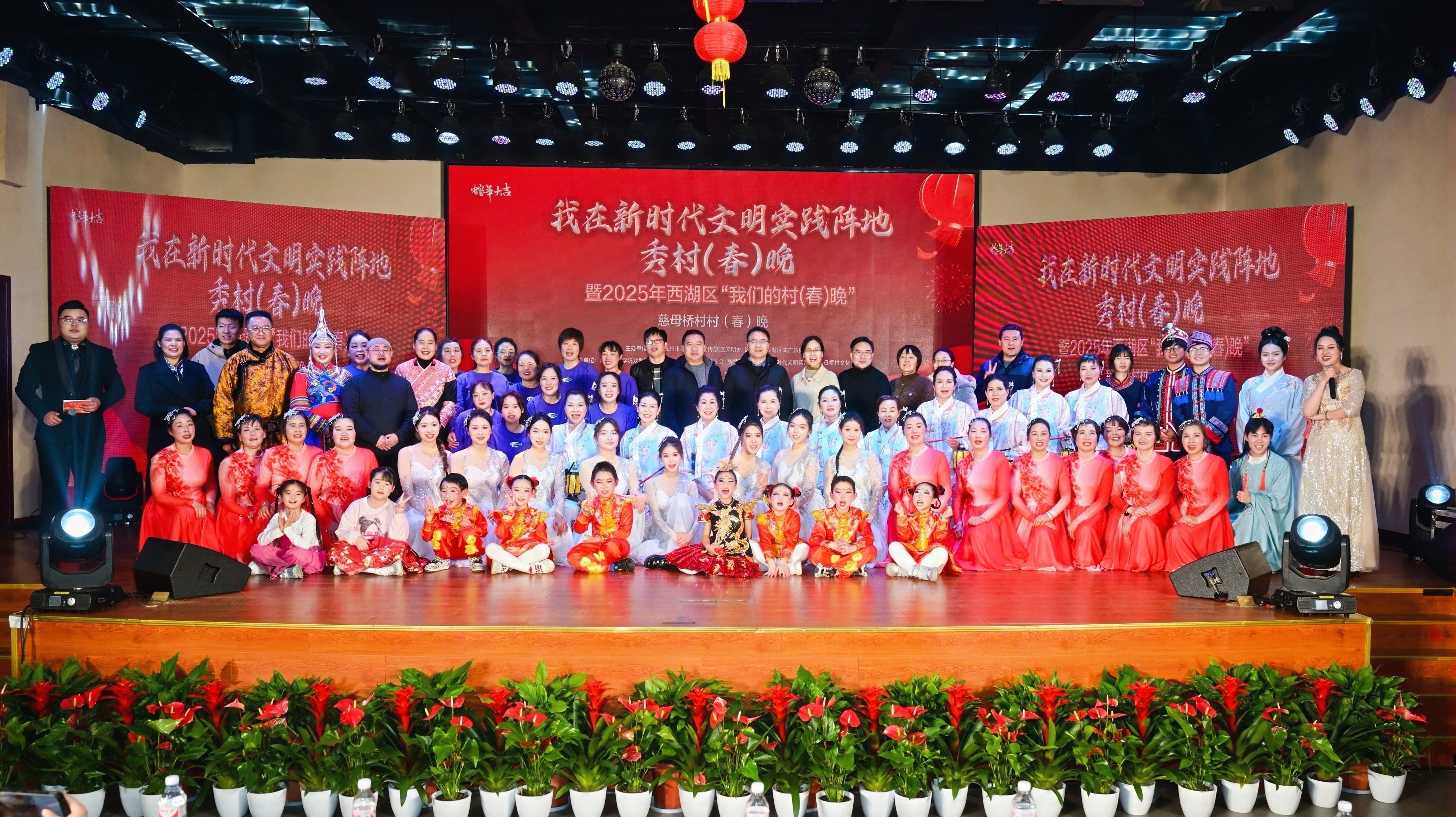 2025年1月3日,在慈母桥村文化礼堂内,一场以“籽籽同心庆华章,戏承慈孝幸福年”为主题的慈母桥村春晚活动热闹上演。戏剧系40余名师生热情参与其中,以精彩的表现开启“剧魂培根——1+5+5”党建品牌建设下有组织的青年实践团队积极参与实践活动的新年新篇章。