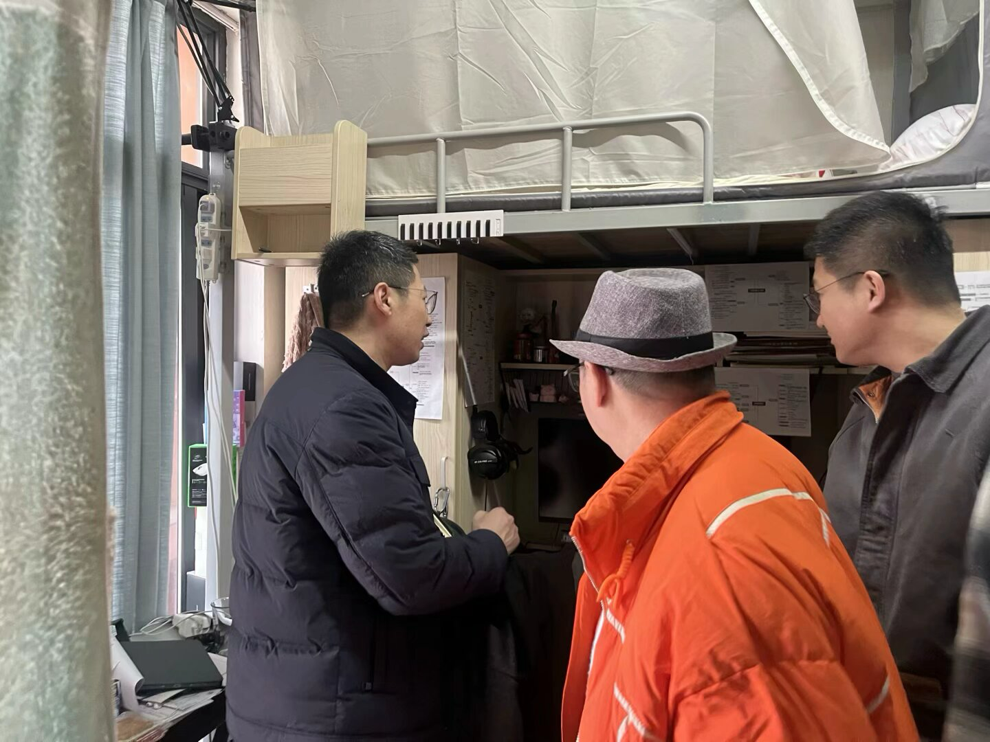 走访校内公寓过程中,老师们仔细查看了学生宿舍的环境卫生、用电安全及生活设施,强调要保持宿舍整洁,积极营造良好的学习与生活环境,并提醒同学们要牢固树立“安全第一”的意识,不断加强人身安全、食品安全、财产安全等。