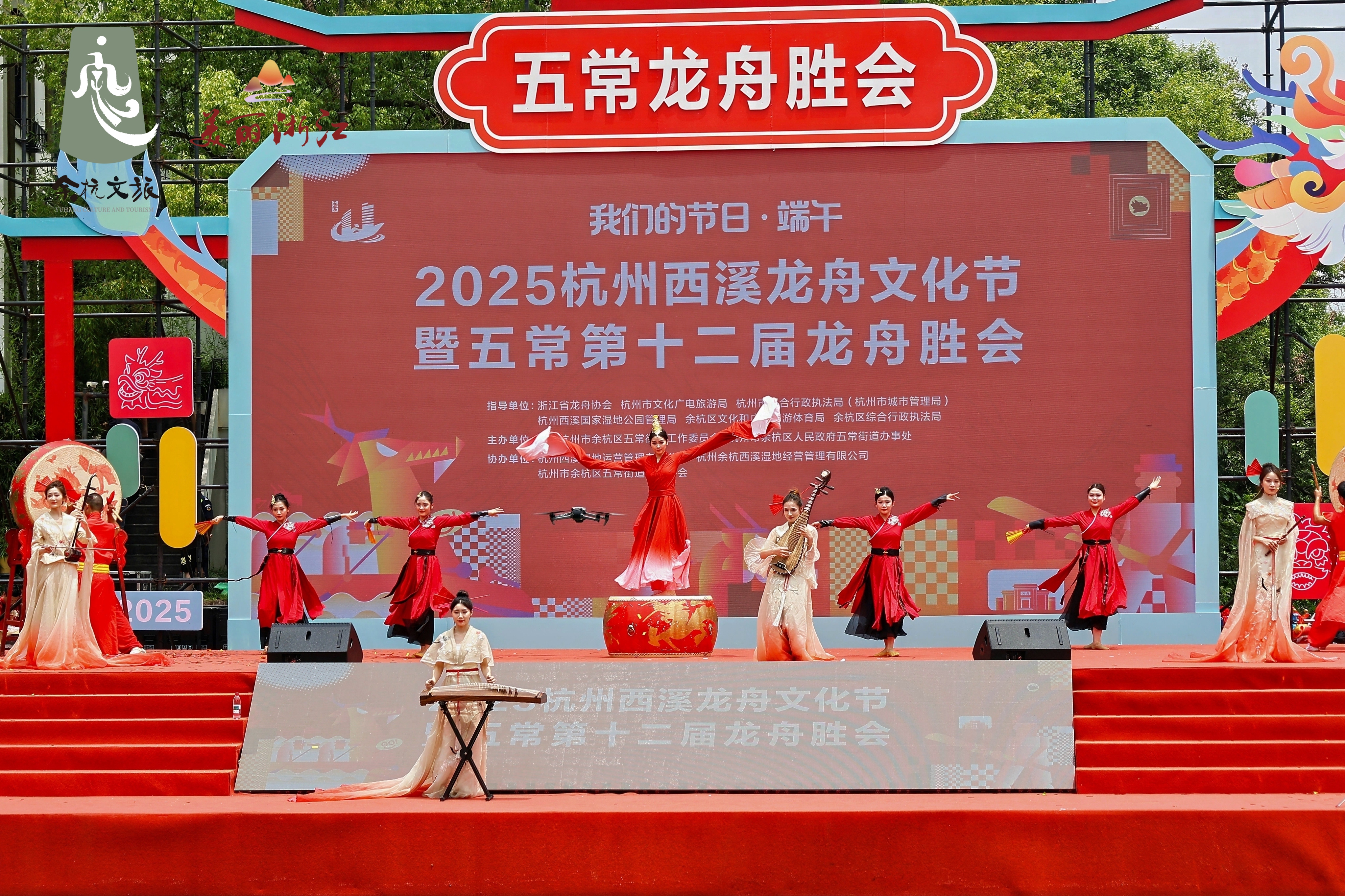 5月31日,“余杭好地方·端午正当潮”活动在西溪湿地隆重启幕。开幕式上,由浙音演艺带来的文艺赋美系列精彩表演与龙舟竞渡相映成趣,为市民游客呈现了一场端午文化盛宴。