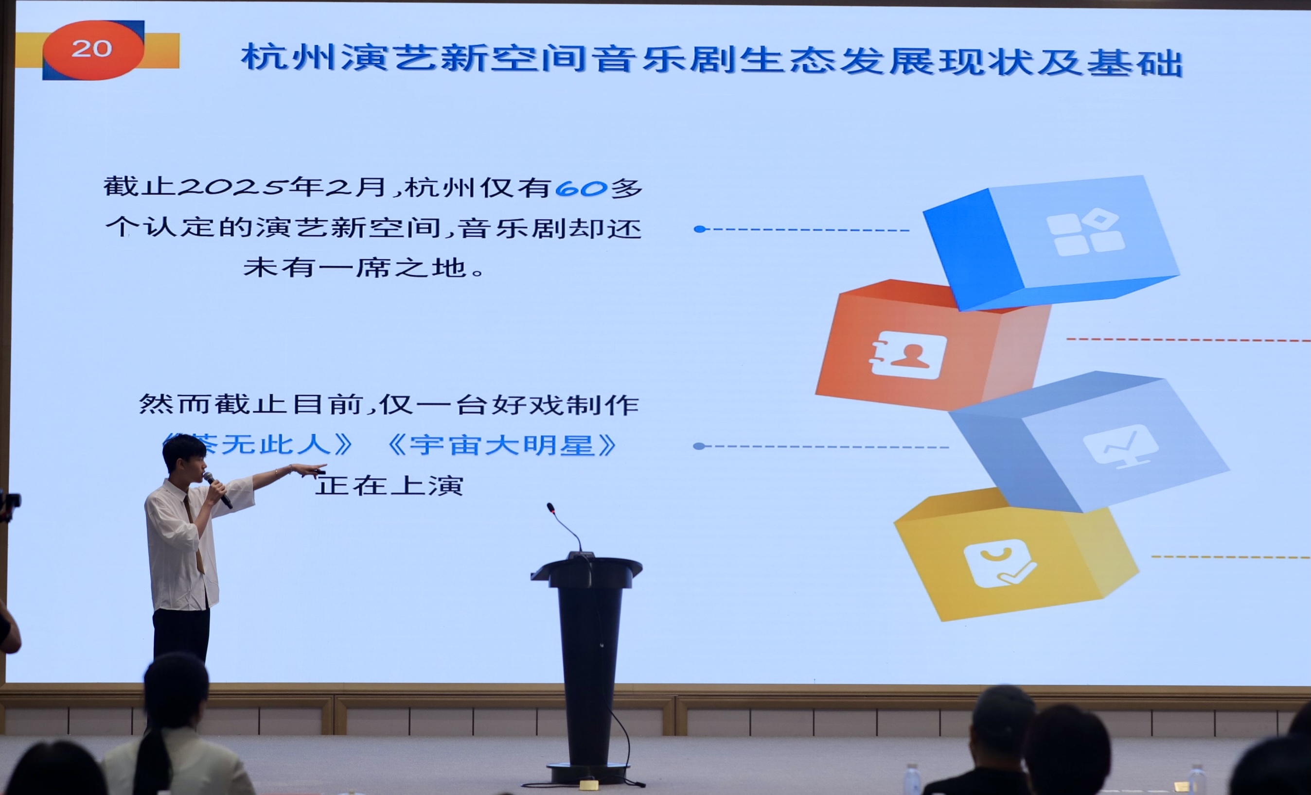 戏剧系音乐剧教研室表导演教师吴波与22级音乐剧学生冷校龙撰写的论文《杭州演艺新空间音乐剧生态构建展望》入选本次戏剧交流活动,并受邀在主旨交流环节进行学术发言。该论文聚焦杭州演艺新空间音乐剧生态构建这一前沿课题展开系统研究,深入剖析了在文化产业高质量发展与文化软实力提升的双重驱动下,如何依托杭州深厚的历史文化底蕴与蓬勃的创新动能,构建 “文旅融合、文商联动、文教共进、科艺共生” 的四位一体音乐剧生态系统。此项研究不仅为杭州音乐剧产业的可持续发展明晰了路径,更在推动城市文化品位提升与文化产业高质量发展方面提供了具有前瞻性的理论参考。