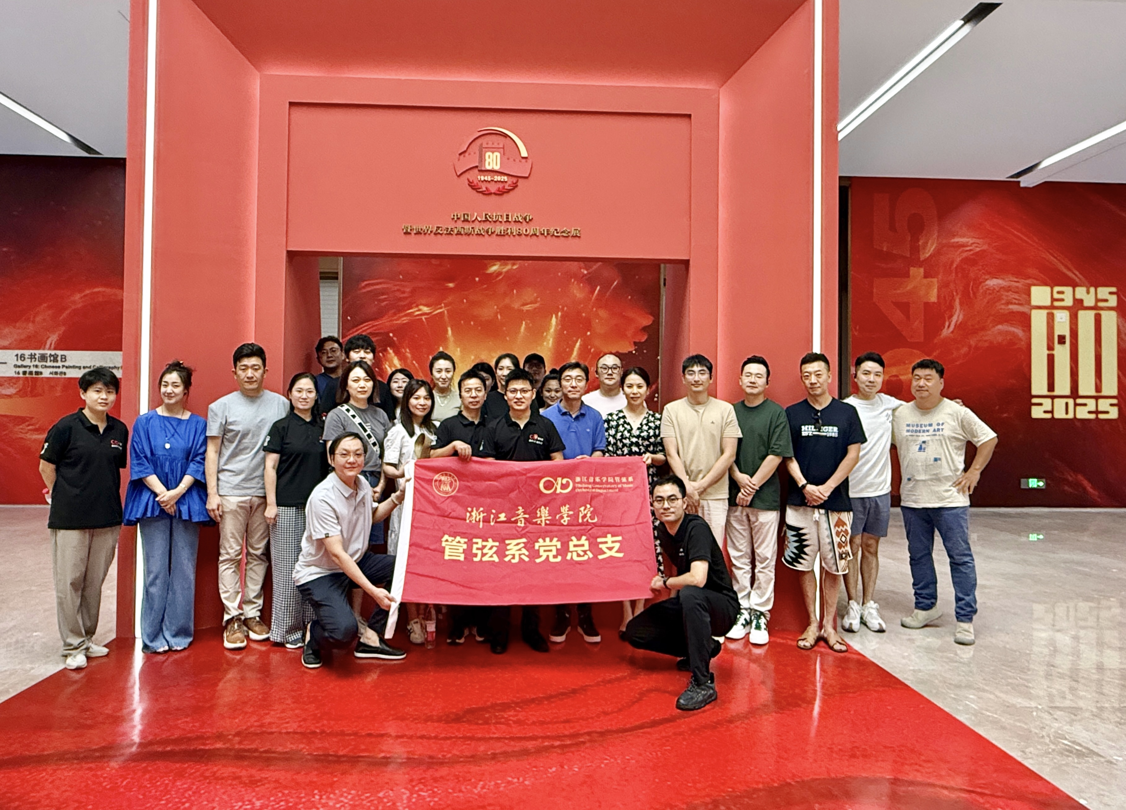 为深入推进新时代立德树人工程,弘扬爱国主义精神,传承红色基因,9月12日教师报到当天,管弦系党总支将全体教职工“开学第一会”设在浙江省博物馆“热血沃东南 浙江抗战的烽火岁月——纪念中国人民抗日战争暨世界反法西斯战争胜利80周年纪念展”主题现场,全系教师接受了一堂生动的爱国教育“思政课”。