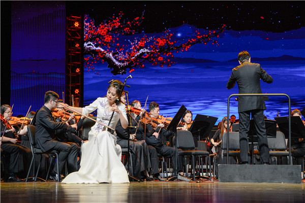 《引子,吟腔和快板》以唢呐独奏曲《一枝花》为创作素材的基础,通过交响乐队与二胡独奏声部相互交汇、对比的“交响化”处理,使得该乐曲将鲜明的地方特色与浓烈的时代气息有机的融为一体。国家一级演员许奕教授运用大幅度滑音及揉滑、加花等传统演奏技,把曲目展现得既有宏大的气势,又富于生动、幽默的情趣。