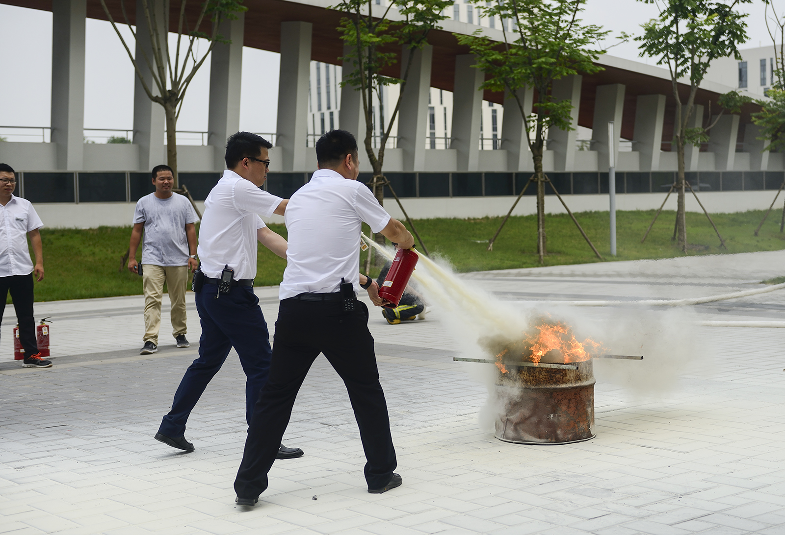 演练结束后,全体参演人员在3号学生公寓门口空地集合,由消防指挥员讲评演练过程并开展灭火技能培训,包括展示快速穿着战斗服、快速铺设水带出水操、车上器材展示、讲解灭火器正确使用方法等,并组织学院师生员工进行灭火器现场灭火实战演练。