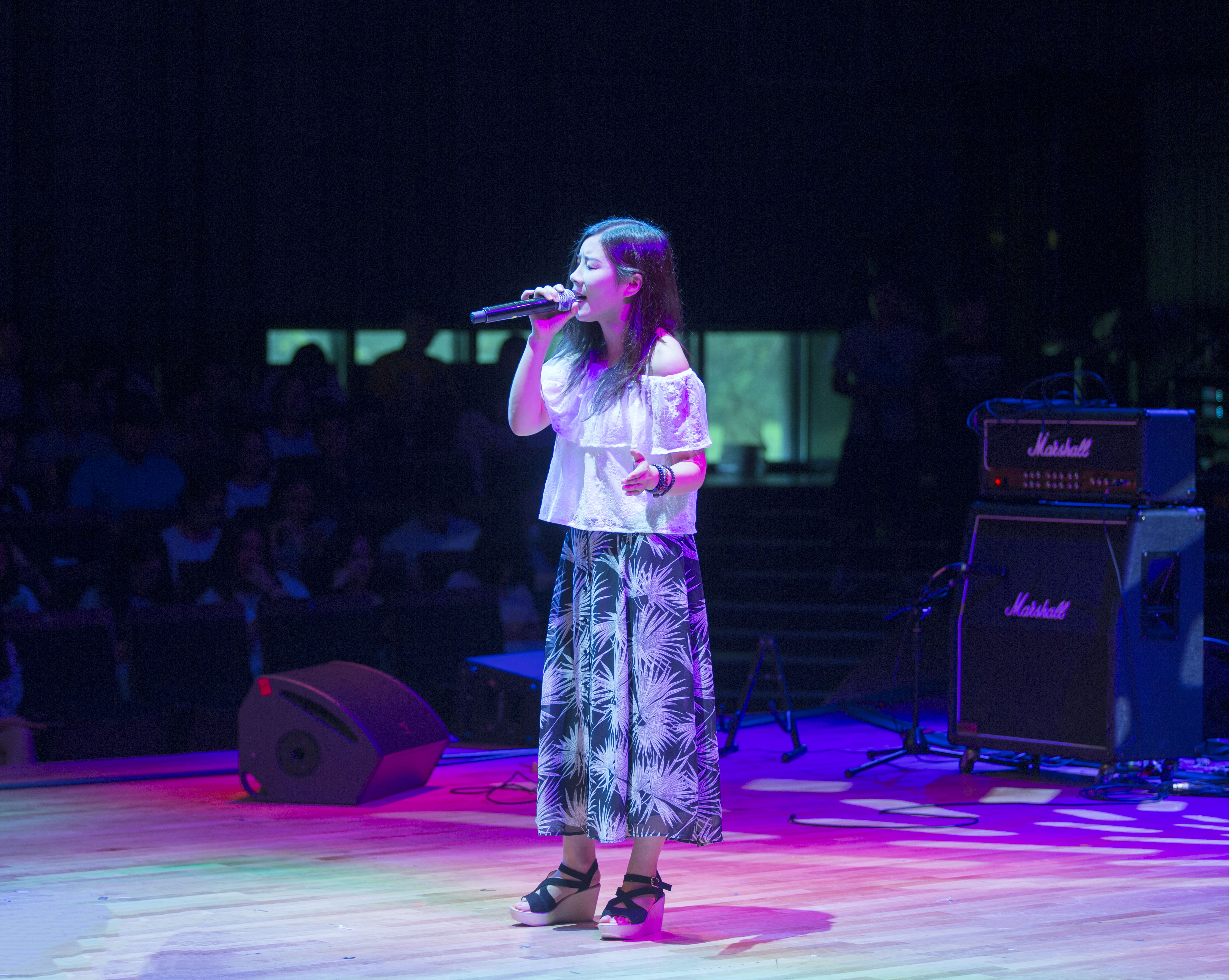 音乐会在我院MIML乐队带来的《最好是错过》中绚丽开场,摇滚激情点燃全场;选手张建带用他那带有些许沧桑的嗓音,以一首民谣风《照旧的春风》如清风般唱出了对母亲、对家乡的思念;气质美女徐菲以一头短发、背心加短裤造型出场,她深情地弹唱着《别在我酒里掺水》《我只是过的自由》,颇有陈绮贞的味道;大麦哲伦乐队充分展现了其英式、电子、独立的风格,以一曲《Good Luck》high爆现场,主唱边跳边唱,散发着音乐本身纯粹的味道;一身汉服造型的赵迎,吸引了观众无数目光,他打着太极唱心灵音乐,那动听的声音直接穿透内心,震慑全场;由小鲜肉组成的FRIDAY组合一登场,粉丝们尖叫连连,两首Pop曲风的歌曲《Got It》《年少》带来了强劲的青春活力,闪烁的电脑灯配上吉他疯狂弹奏,舞台成了他们的个人秀场…..选手们的音乐作品涵盖中西方古典、民族、现代等各类音乐形式的声乐、器乐原创作品。