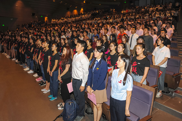 9月17日晚,我院2016级新生开学典礼暨迎新晚会在大剧院隆重举行。现场洋溢着青春活力,满载着浓浓情谊,551名本科生和66名研究生齐聚一堂。院领导褚子育、张建国、贾秀英、张鸿雁、方培新、杨九华,各教学系(部)主任、相关职能部门负责人,新生家长代表、教职工代表等出席。典礼由院党委副书记贾秀英主持。