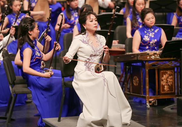 音乐会由特聘教授、著名国乐指挥家吴强教授指挥,我院国乐团倾情演奏经典曲目,展示出了中国民族音乐独特的魅力。国乐团是一支拥有拉弦,弹拨,吹管及打击四个声部全编制的大型民族管弦乐团,由笛子演奏家、国乐系主任杜如松教授任团长,二胡演奏家、许奕任教授任常务副团长,吴强教授担任常任指挥。