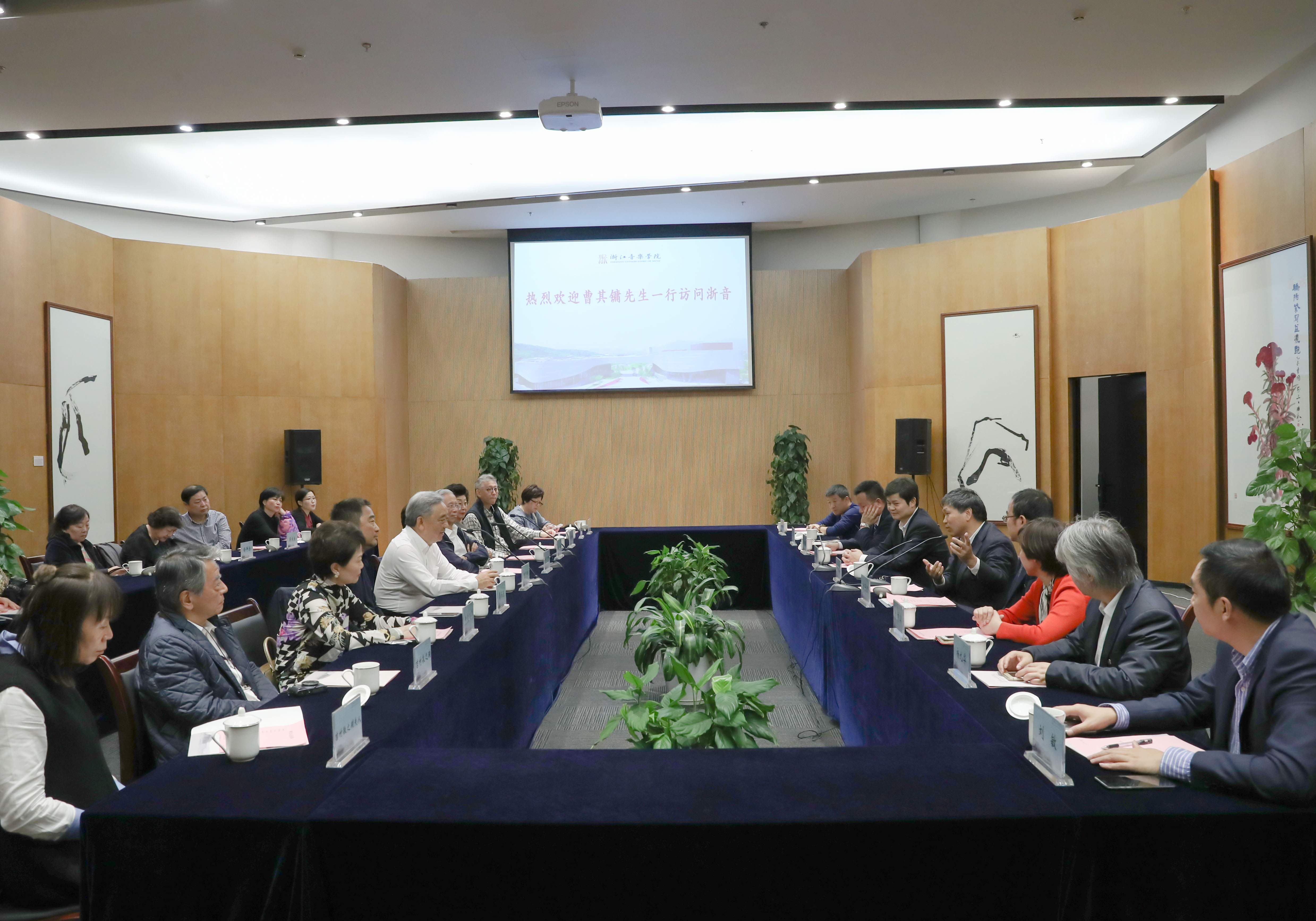 11月6日下午,香港永新企业有限公司副董事长、中国侨商投资企业协会副会长曹其镛先生携夫人曹罗碧珍女士等一行17人来我院访问考察,浙江省文化厅厅长金兴盛、学院党委书记褚子育及党政班子成员迎接并陪同考察。
