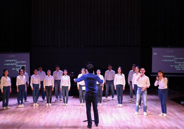 给你一方舞台,展现专业水平。11月10日晚, 2013级非师范专业学生实习乐团汇报演出第二场在我院现代音乐厅火热上演。学院党委书记、副院长褚子育,党委副书记、副院长张建国,党委副书记贾秀英,副院长张鸿雁,副院长杨九华,全体中层干部及部分师生代表观一同观看了演出。