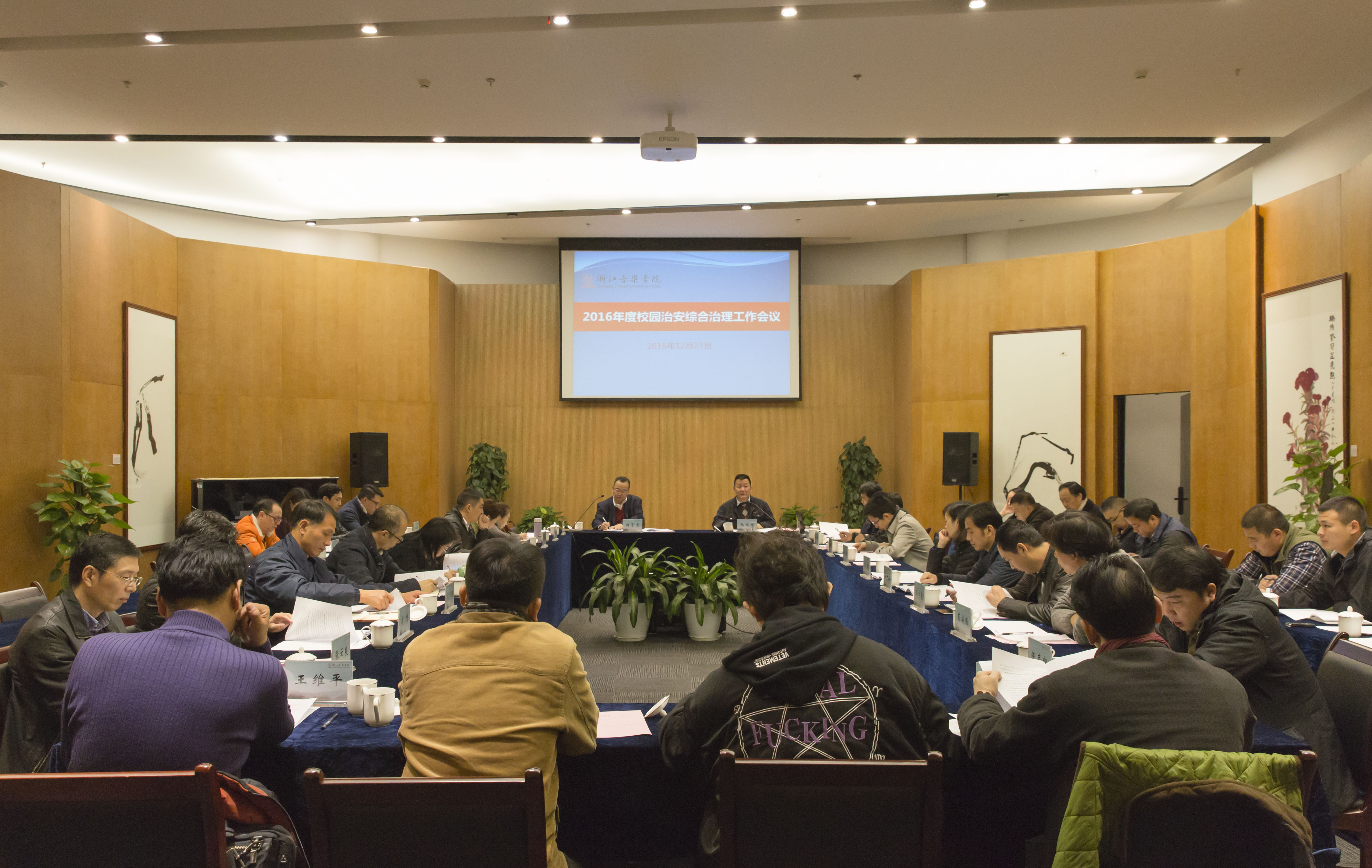 12月21日上午,学院综治委召开2016年度工作会议,学院党委书记、综治委主任褚子育,副院长、综治委副主任张鸿雁出席会议,全体综治委成员、各系辅导员参加会议,会议由张鸿雁主持。