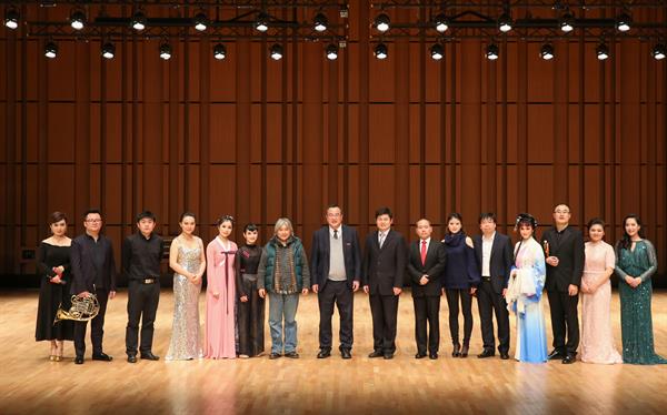 1226日晚,我院首届学术活动季节目展演在标准音乐厅举行,学院党委书记、副院长褚子育,党委副书记、副院长张建国,副院长杨九华及全体中层干部观看了此次演出。