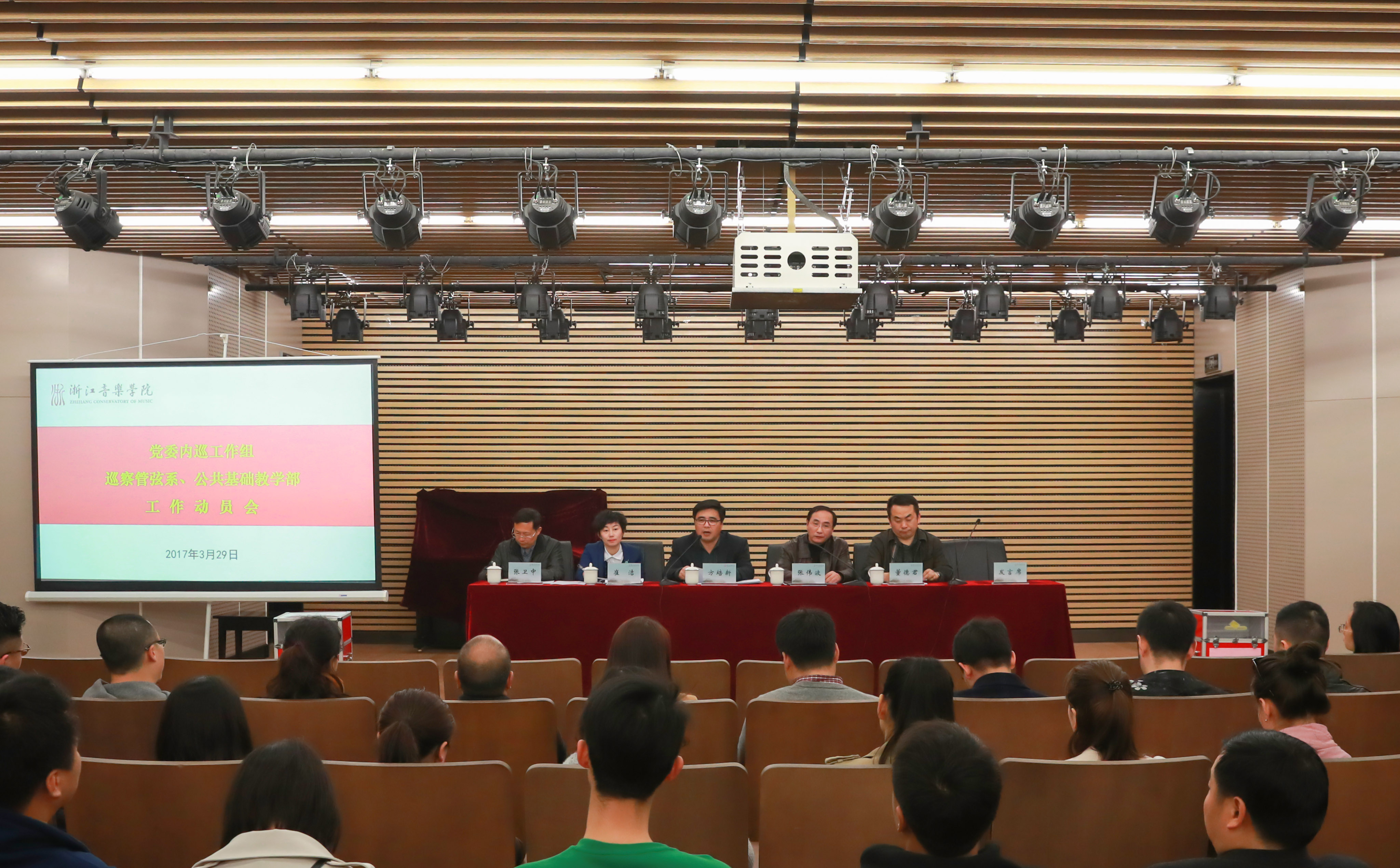 3月29日下午,我院召开党委内巡组巡察管弦系、公共基础教学部动员会,并正式启动2017年党委内巡工作。学院党委委员、纪委书记、内巡工作组组长方培新代表学院党委作动员讲话,内巡工作组全体成员,管弦系、公共基础教学部全体教职工等参加会议。
