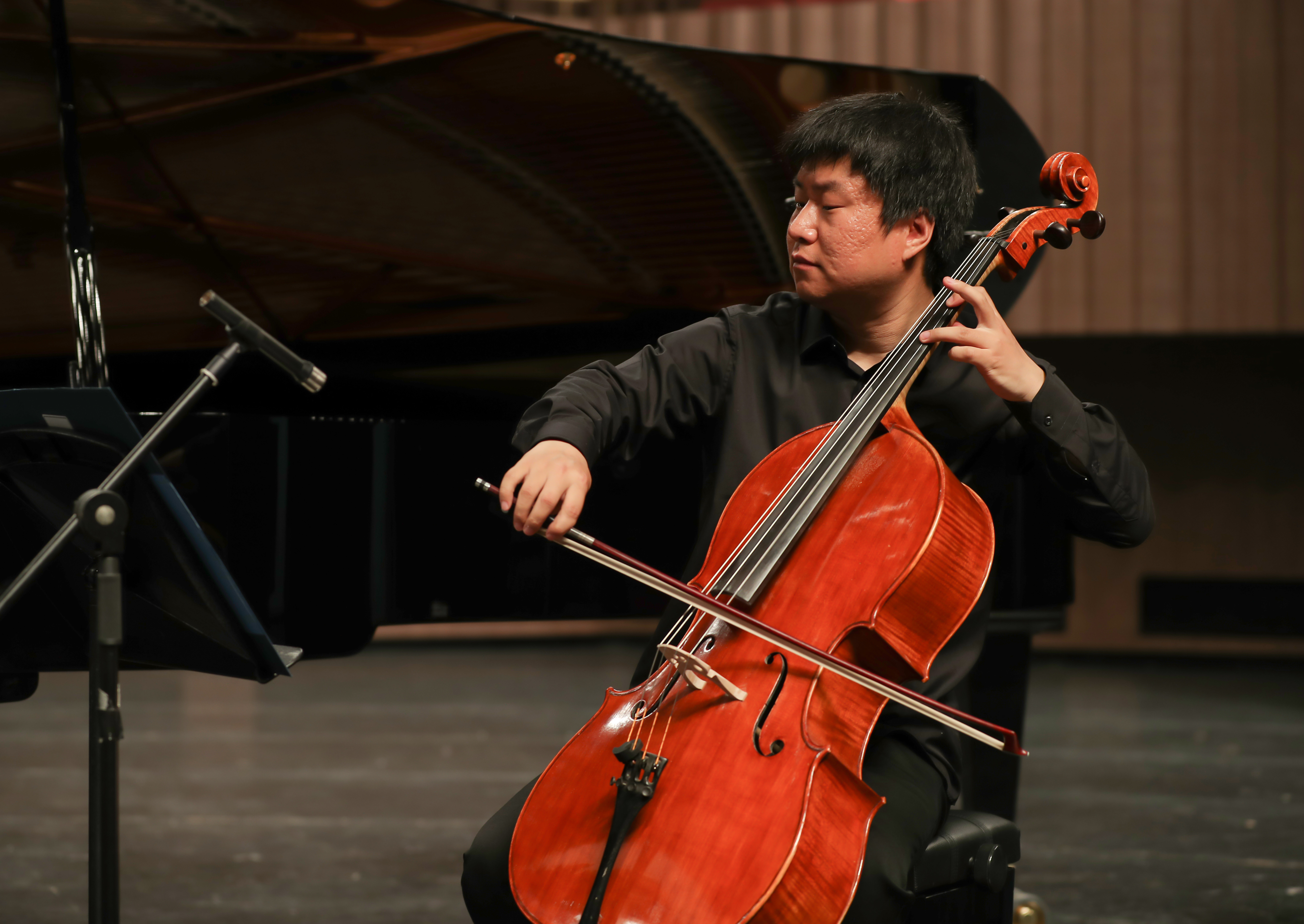开场前,音乐厅内就弥漫着优雅浪漫的味道。伴随着轻快透明的旋律响起,德籍华裔青年钢琴演奏家、钢琴系教师谭璐在黑白键上轻盈地飞舞,指尖奏出悦耳的音符,这是杭州钢琴三重奏组为听众们带来的《降B大调第一钢琴三重奏》作品第21号。明快动听的旋律让听众置身于轻盈空灵的音乐空间,听众闭幕倾听,时不时莞尔一笑。坐在钢琴一侧的青年小提琴演奏家、管弦系教师石帅伴随着音律,舒展开琴弓,高度默契的合奏,为音乐会的开篇乐章增添了绚丽的色彩,她个人激情澎湃的舞台魅力,赢得了观众的阵阵掌声。紧接着,曲风一转,低沉的大提琴旋律在耳畔响起,青年大提琴演奏家、管弦系教师张宝君将听众的思绪带入了乐章的中段,弦乐轻柔地呜咽幽冥,仿佛是德沃夏克在叙说音乐背后的故事。细细品位音乐的情调,淡淡的忧伤,悲苦之情在小提琴细腻流动的拉弦声中不断升华,奏出了曲章的最高潮部分。主旋律的不断变奏,给听众又一种体验。钢琴、提琴的完美配合,使整首乐章又变得轻快明朗起来。一曲奏完,现场掌声雷鸣。