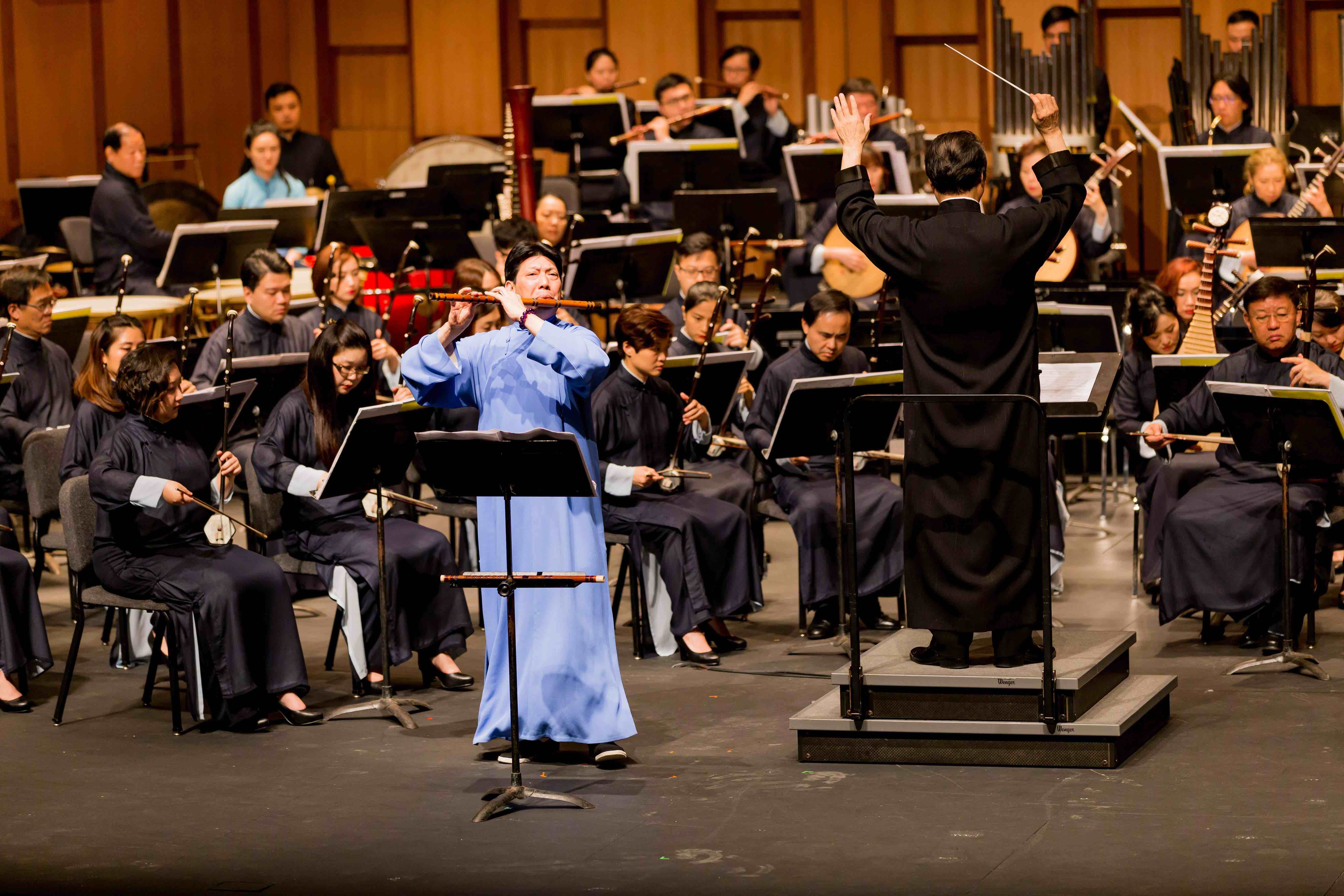 音乐会由《渔舟凯歌》拉开序幕,锣鼓喧天的火热节奏奠定了音乐会的喜庆基调,也使这场音乐会融入了浙江元素。随后,香港中乐团笙首席陈奕潍和琵琶首席张莹分别带来了协奏曲《虹》和《云想花想》。两团齐奏的《西湖寻梦》则将音乐会推向了高潮。曲目中的《水月》《鱼乐》两个乐章,一出场,笛声悠扬,观众似坠入深深的江南烟雨中,一切都如鱼得水、浑然天成,那么悠游安然。一曲终了,全场寂静数秒,随即响起了雷鸣般的掌声。杜如松演奏的《雪意断桥》充满了“断桥残雪孤山梅”的韵味,为观众带来如诗如景的听觉体验。青年钢琴家吴牧野与香港中乐团一起,为观众带来了《我的祖国》、《黄河》等经典曲目。精湛的演出为现场的观众带来完美的视听感受,熟悉的旋律引起了现场观众的强烈共鸣。