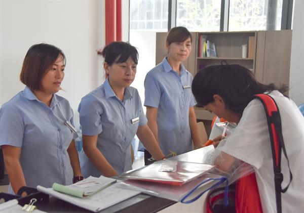 一大早,学院领导褚子育、张建国、贾秀英、张鸿雁,以及相关部门负责人就来到报到现场,看望新生及家长,并慰问工作在迎新一线的工作人员。每到一处,学院领导都详细询问迎新工作进展情况,叮嘱工作人员全力以赴,为新生及家长们提供全方位、高效率的服务。在新生“绿色通道”办理点,学院领导仔细询问今年相关手续办理情况,嘱咐现场工作人员及时解决新生们提出的入学困难。