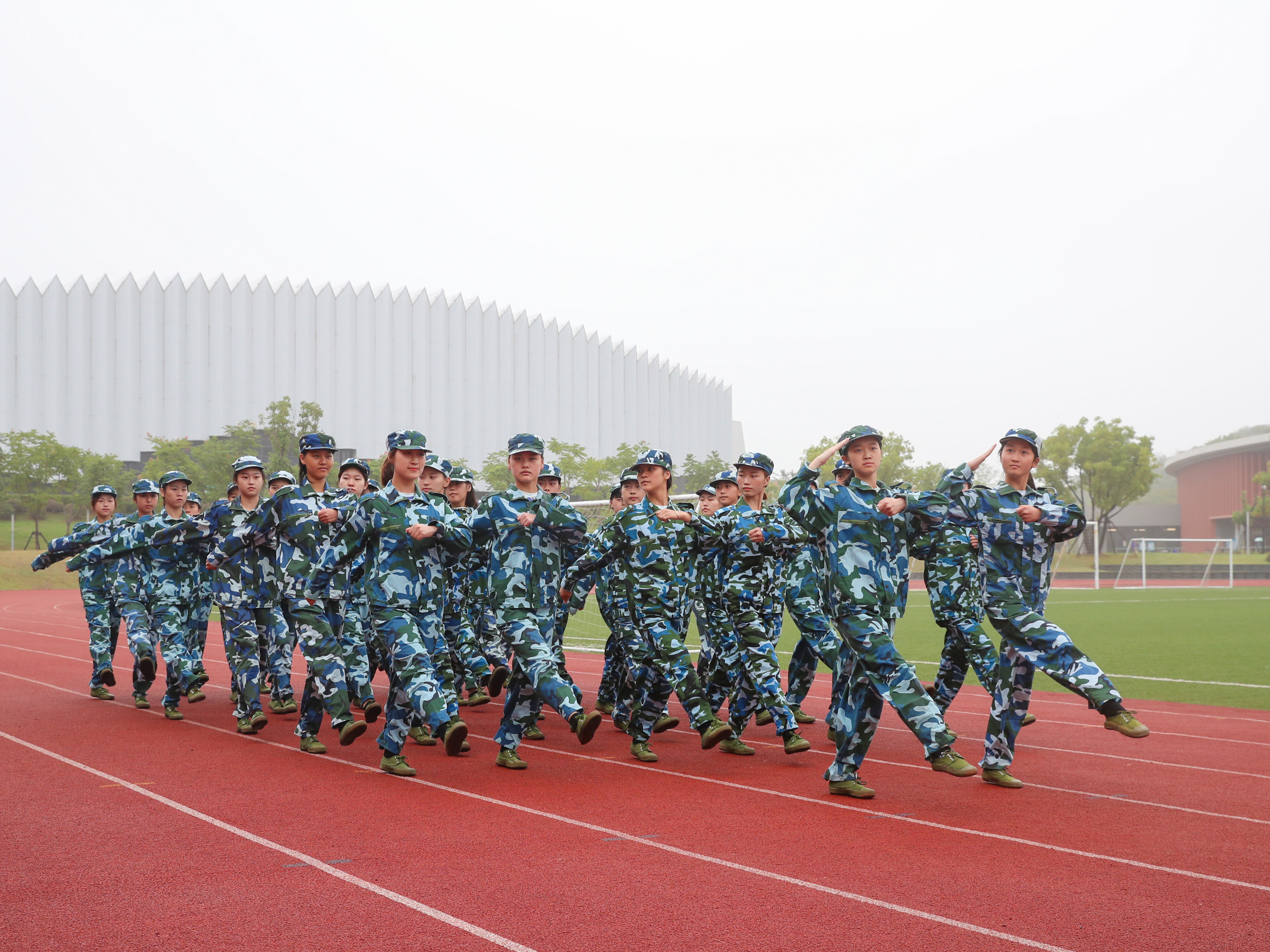 在雄壮的国歌声中,军训总结大会正式开始。庄严肃穆的迎团旗仪式后,600余名参训学生接受了学院党委书记褚子育的检阅,同学们情绪高昂、英姿飒爽,口号震天、气势如虹。